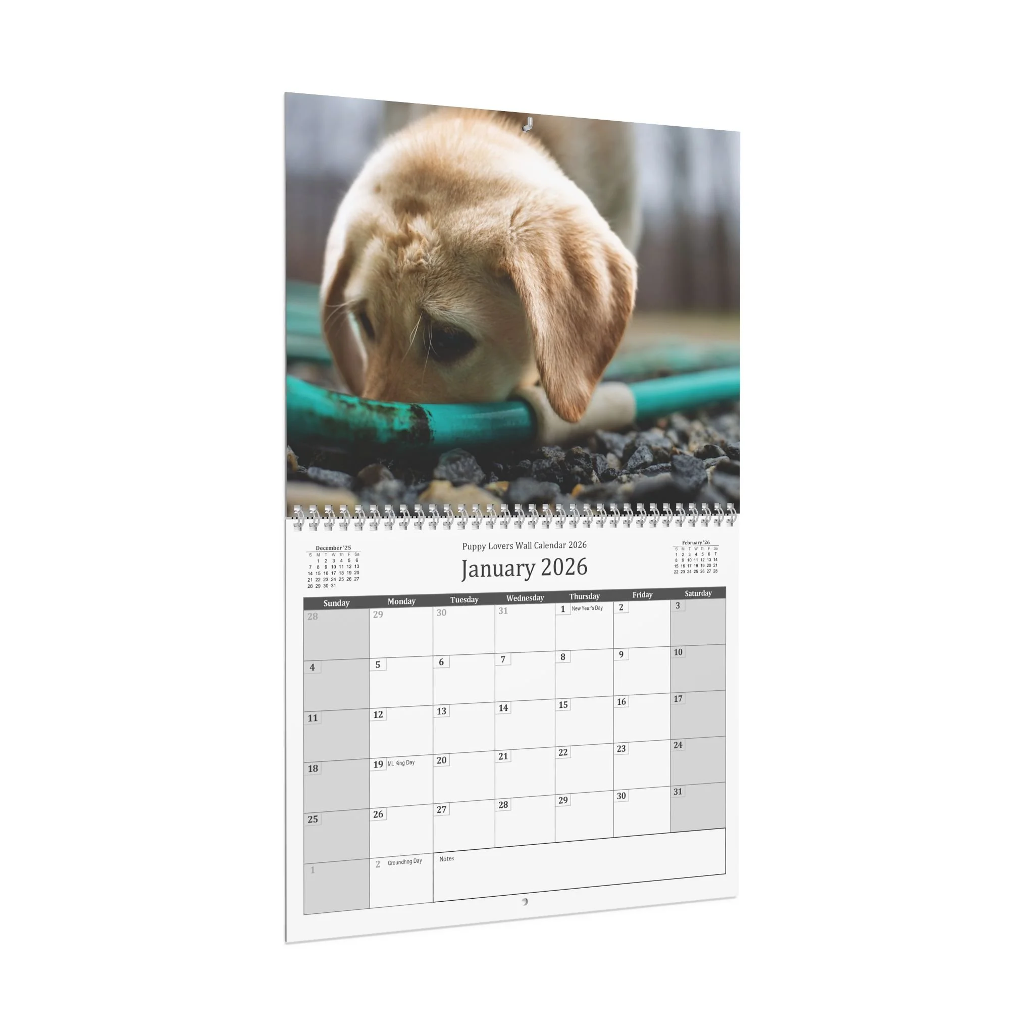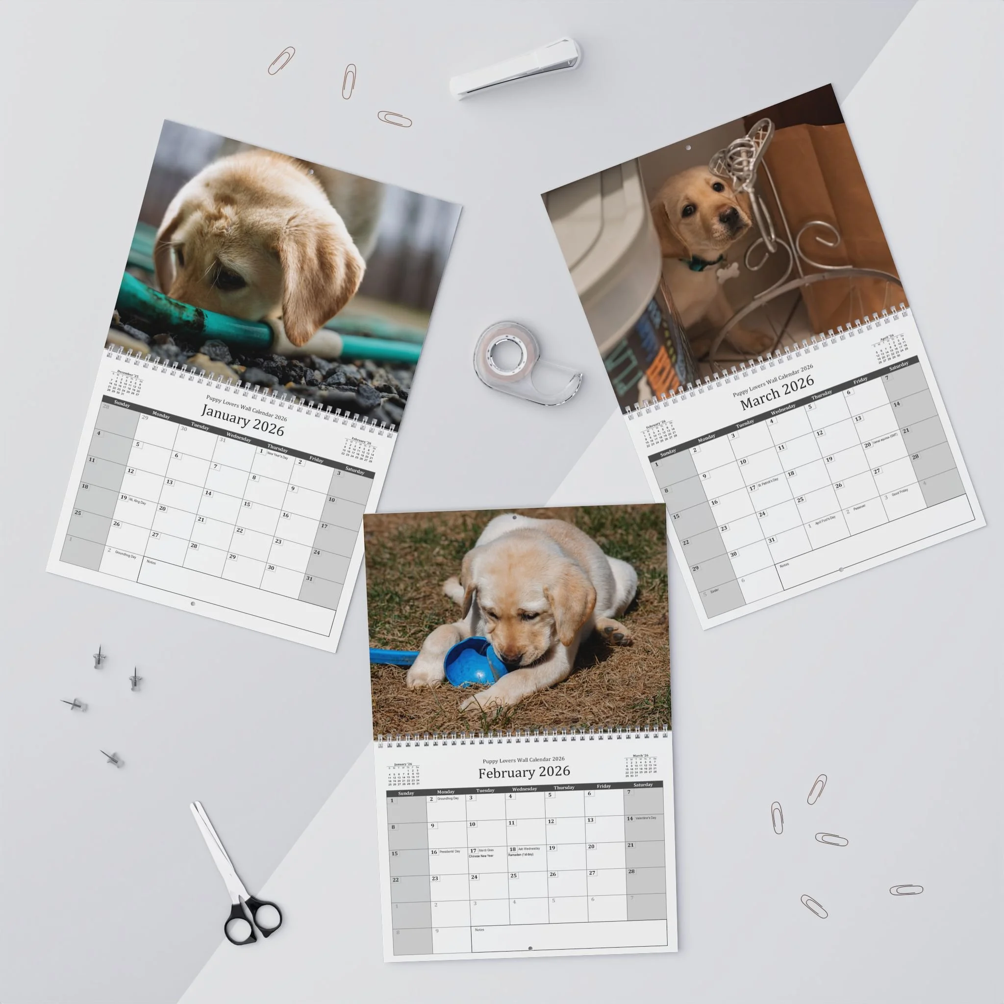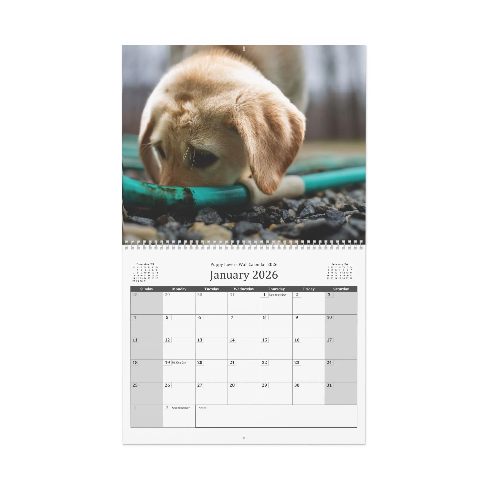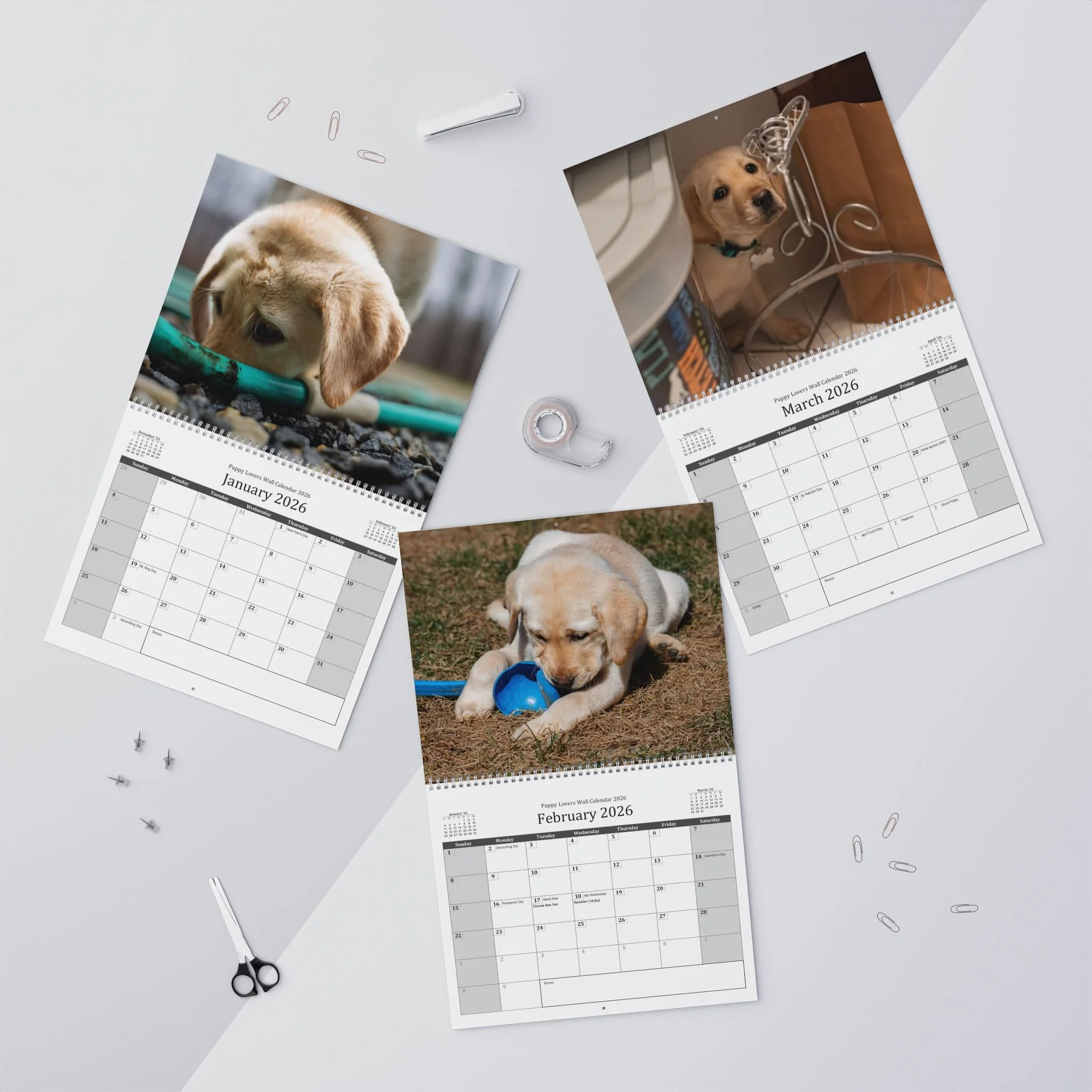 Adorable puppy calendar for 2026 featuring pictures of a cute yellow lab puppy growing up throughout the year. Guaranteed to warm your soul, this calendar is perfect for dog lovers and families. Ideal for gifting during the holiday season or as a New Year's gift.